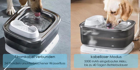 The astropet Poseidon Series Is a wireless drinking fountain with 7 liters Capacity - Ideal for large dogs and multi -animal households. The infrared sensor only activates the water flow when approaching, saves energy and keeps the water fresh. Up to 68 hours of battery life with normal use - the actual term varies depending on the frequency of use and activation of the sensor. The depth 350 ml drinking shell also offers large dogs of comfortable access. Leisen operation, easy cleaning and effective water filtration ensure comfort and hygiene.
